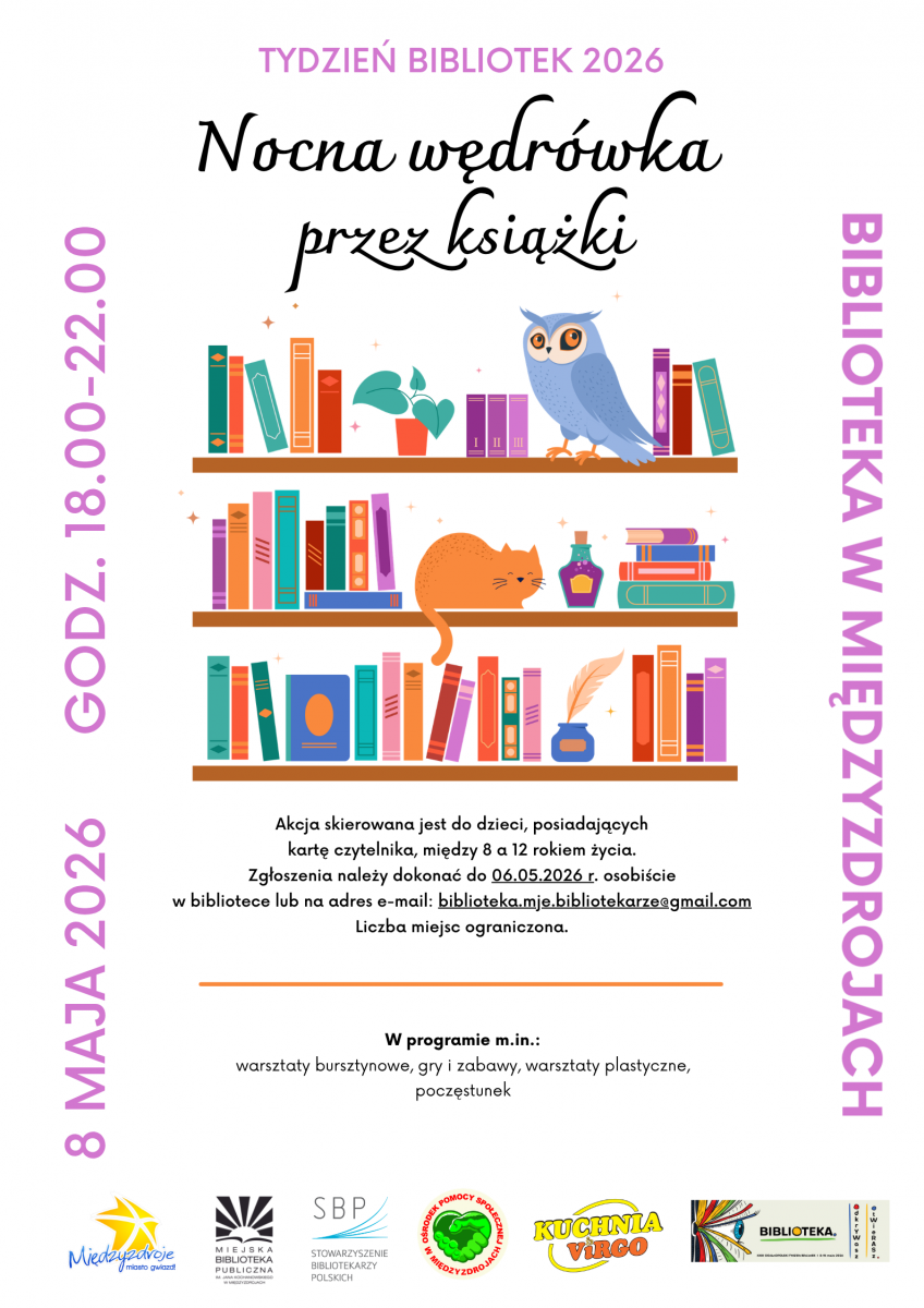 Miejska Biblioteka Publiczna w Międzyzdrojach zaprasza na „Nocną wędrówkę przez książki”,...