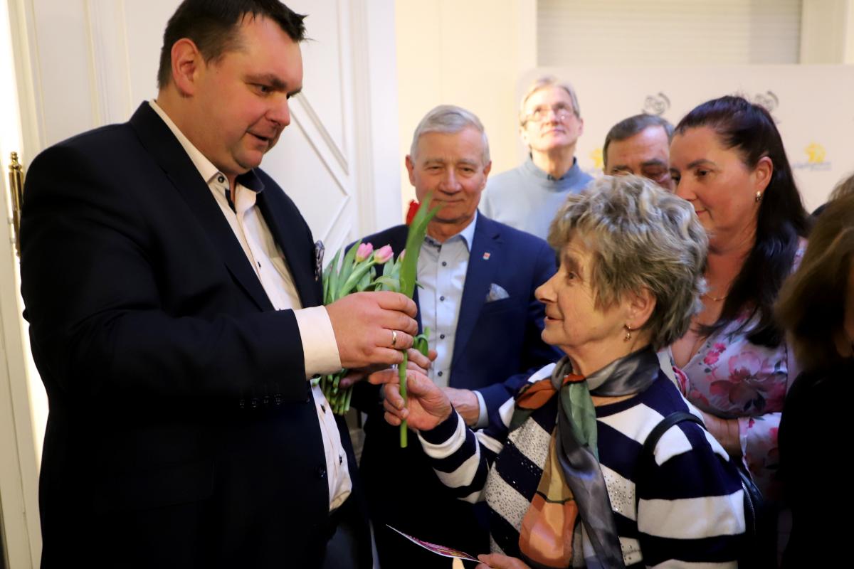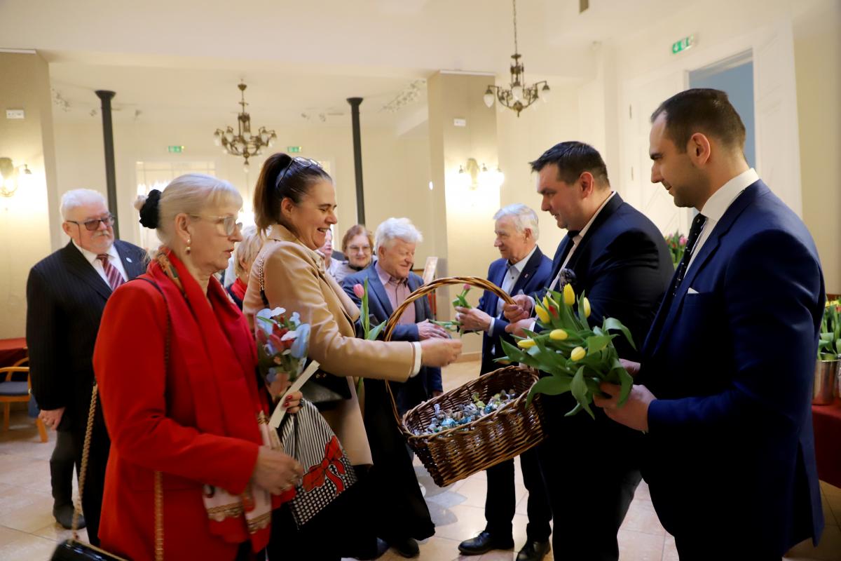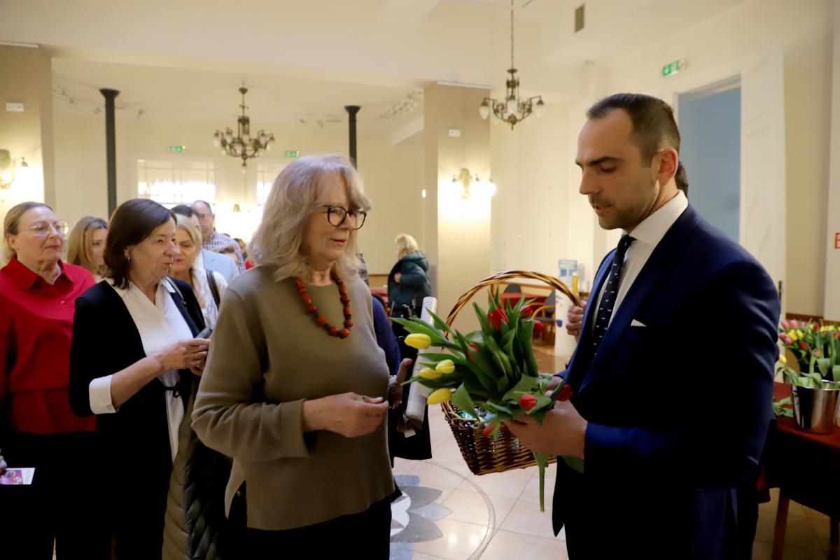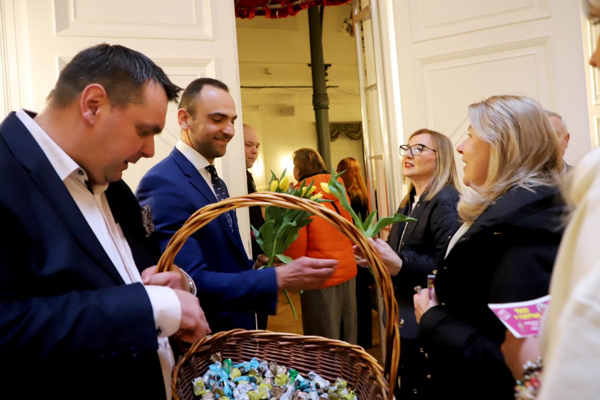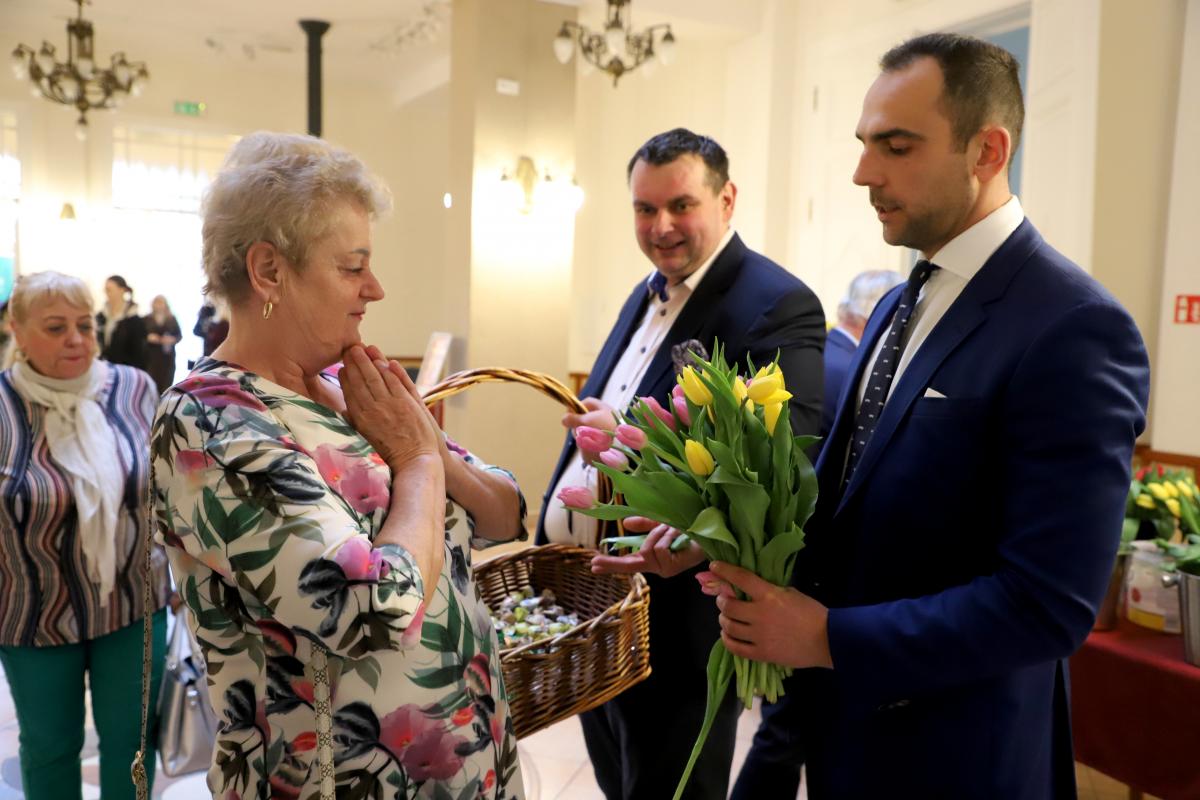 Już od wejścia czekała na nie miła niespodzianka. Przed spektaklem kwiaty i słodycze paniom wręczali Burmistrz Międzyzdrojów Mateusz Bobek, Dyrektor MDK Artur Duszyński oraz Wiceprzewodniczący Rady Miejskiej Henryk Nogala, składając przy tym serdeczne życzenia. Ten gest, choć prosty, był bardzo wymowny i został przyjęty z dużą sympatią. Od pierwszych chwil było widać, że tego wieczoru najważniejsze są kobiety — ich obecność, ich święto i ich radość.
