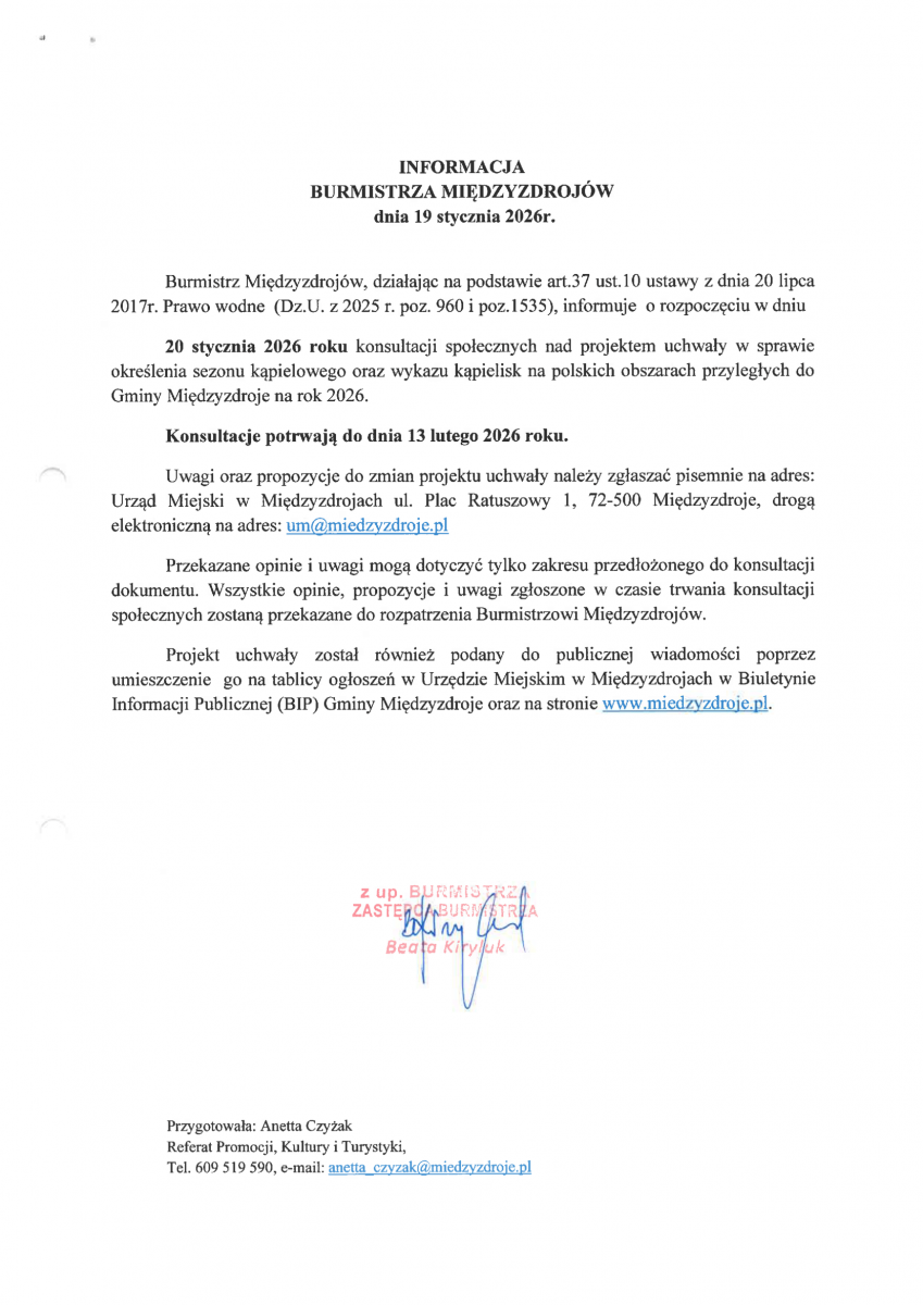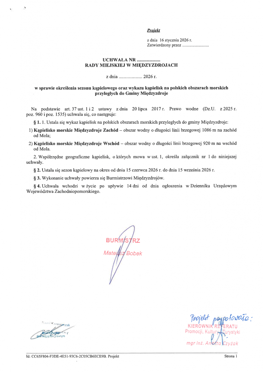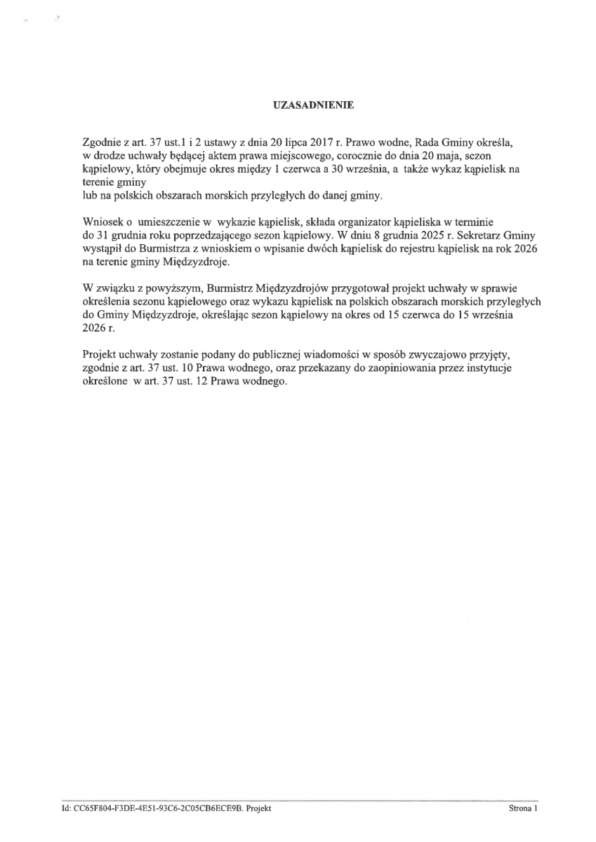 Projekt uchwały w sprawie określenia sezonu kąpielowego oraz wykazu kąpielisk
