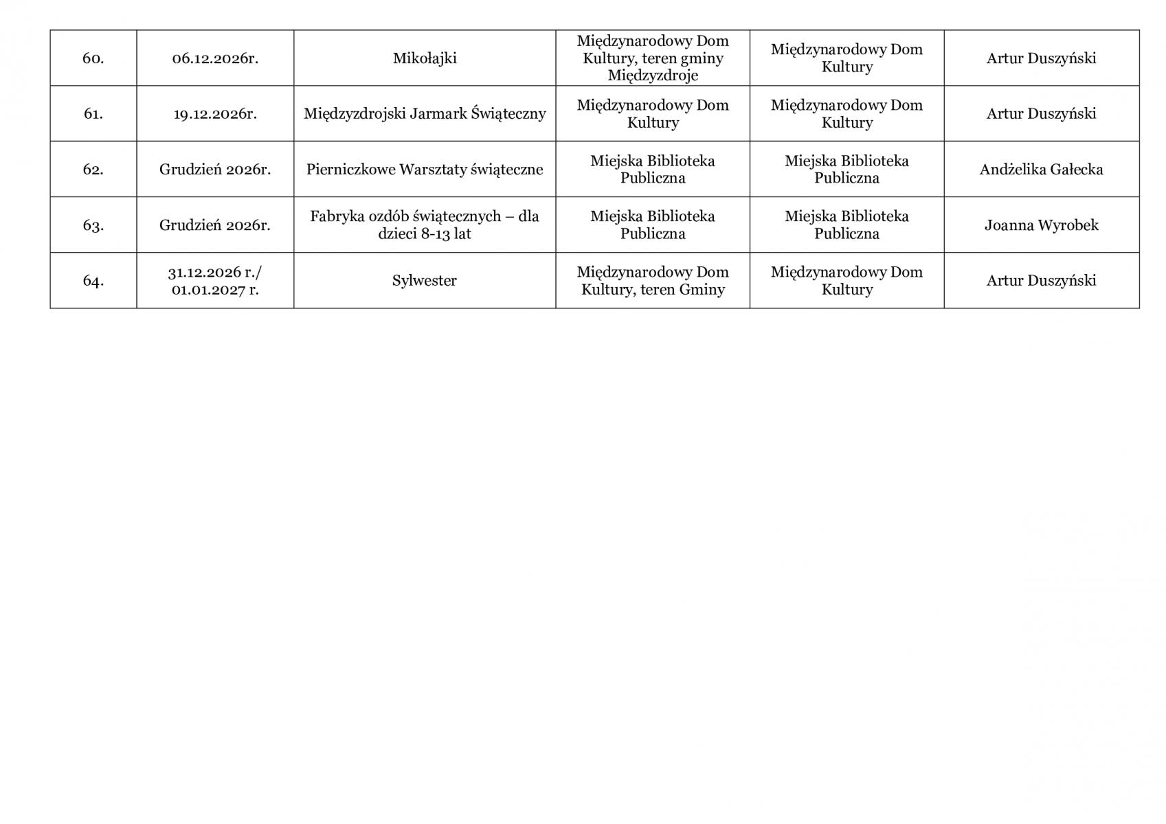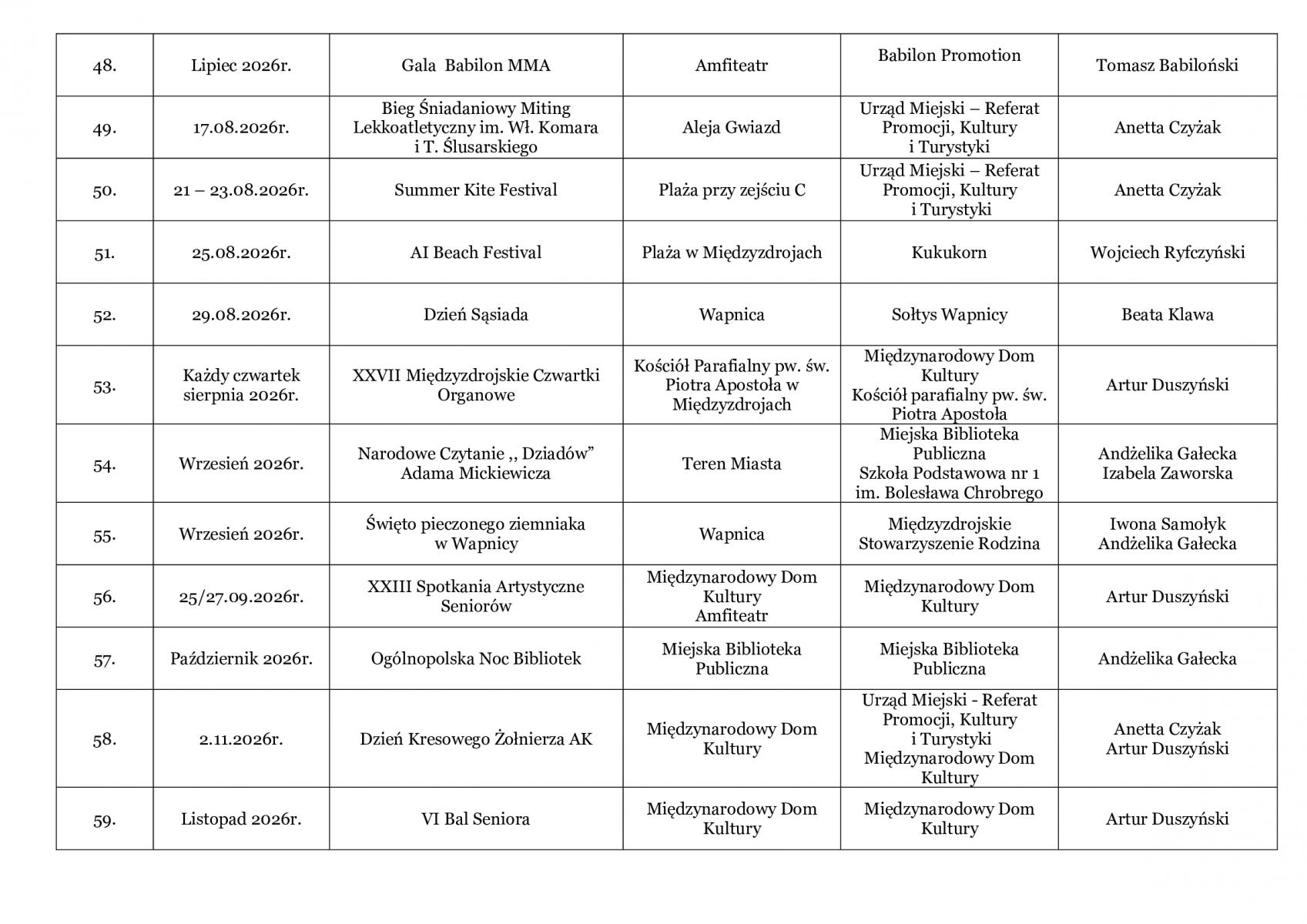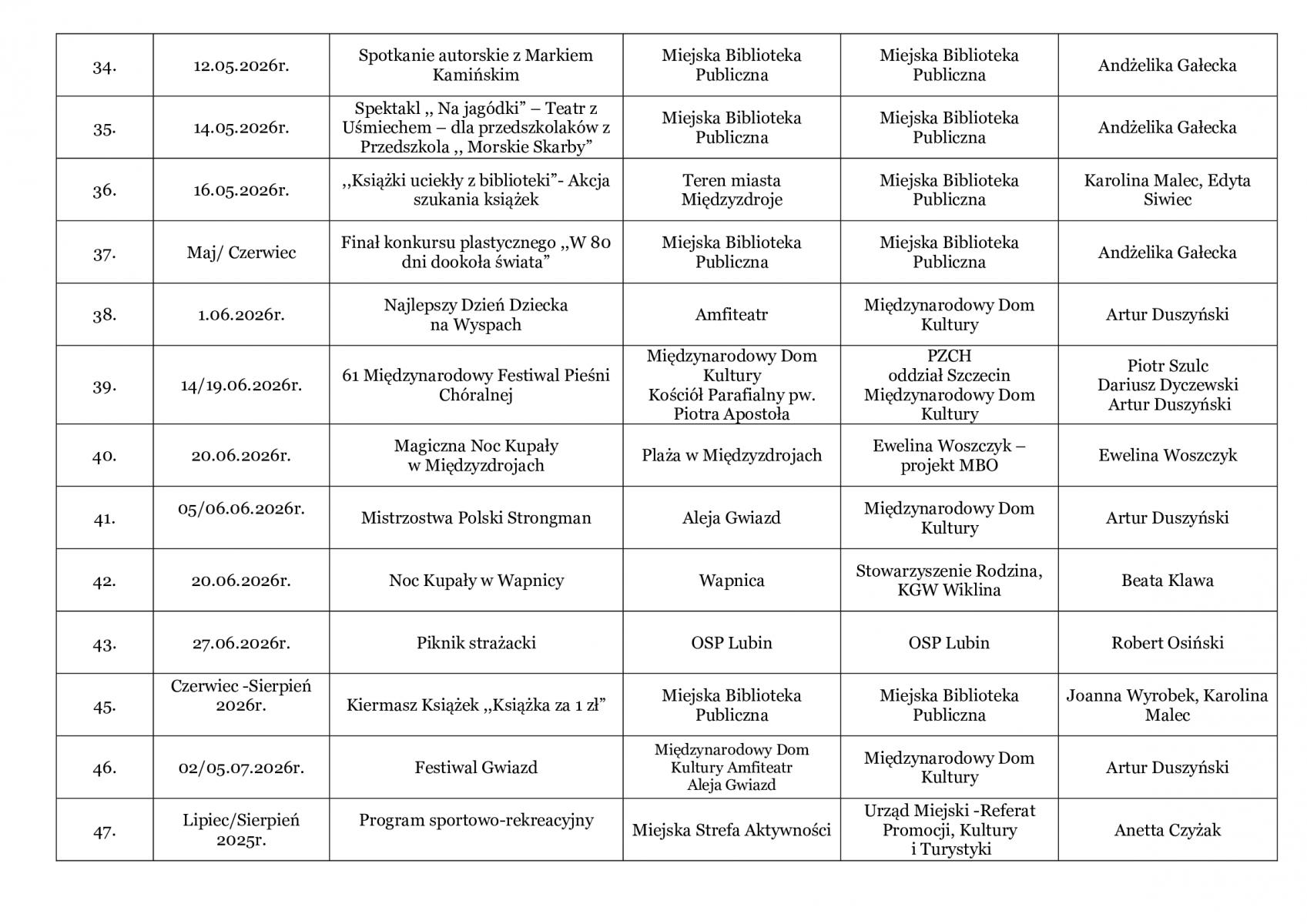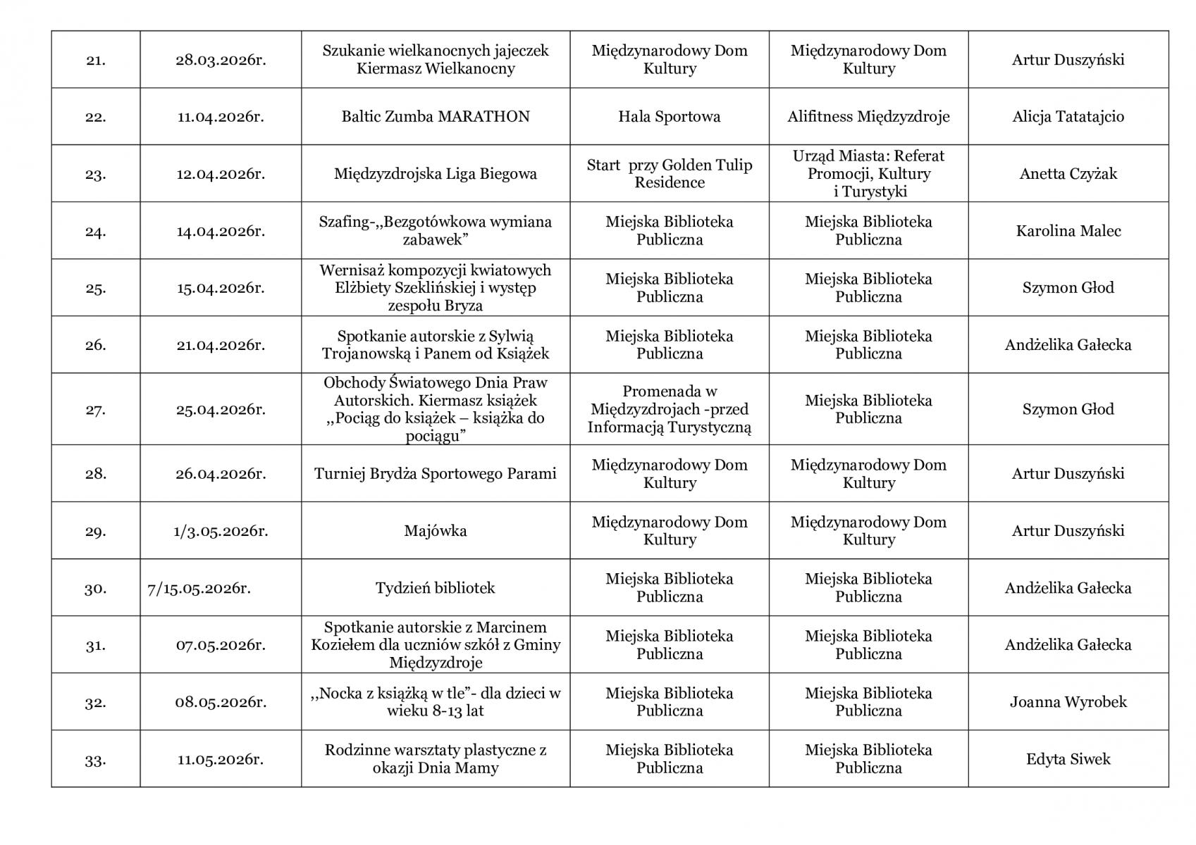 Kalendarz Imprez 2026