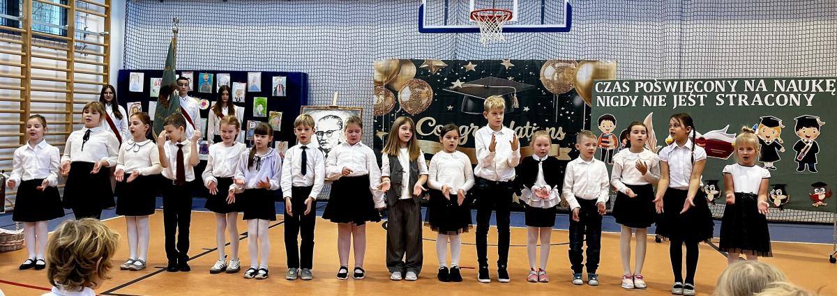 Uroczystość rozpoczęto przypomnieniem dorobku Patrona oraz wartości, które pozostawił kolejnym pokoleniom. Następnie uczniowie klasy pierwszej zaprezentowali przygotowany program artystyczny, recytując wiersze i śpiewając piosenki.