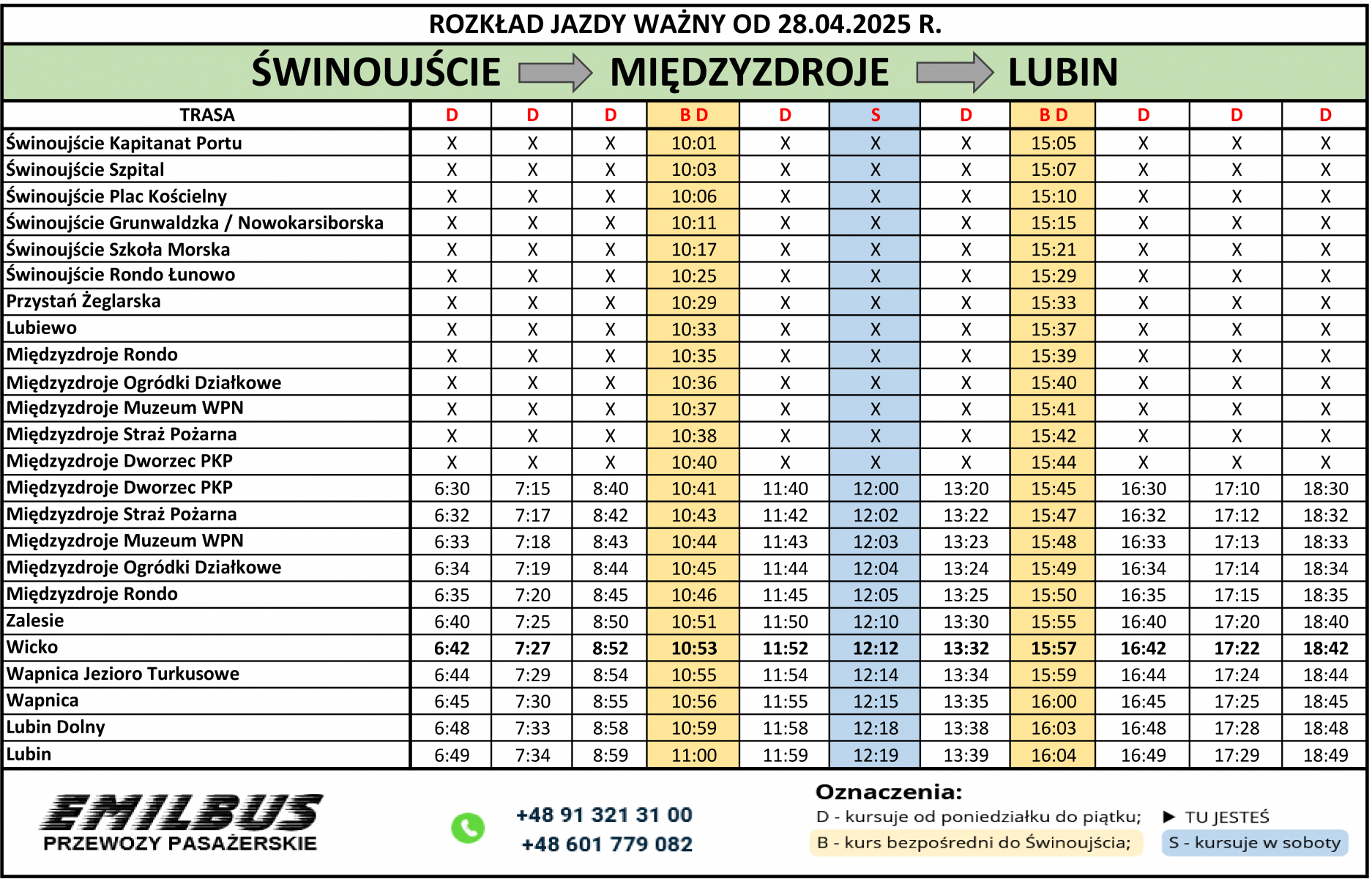 Rozkład obowiązuje od 28.04.2025
