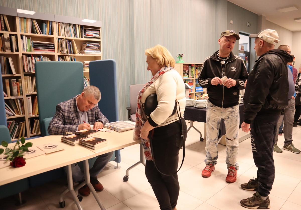 Moderatorem spotkania był starszy bibliotekarz Szymon Głod. Miłą niespodzianką dla autora okazał się portret wykonany przez mieszkankę gminy, Krystynę Marzec, za który serdecznie dziękujemy. Podczas wieczoru można było również zakupić książkę autora wraz z dedykacją.