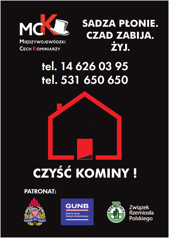 Kampania społeczna "Sadza płonie. Czad zabija. Żyj! " organizowana przez Międzywojewódzki Cech Kominiarzy pod